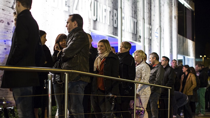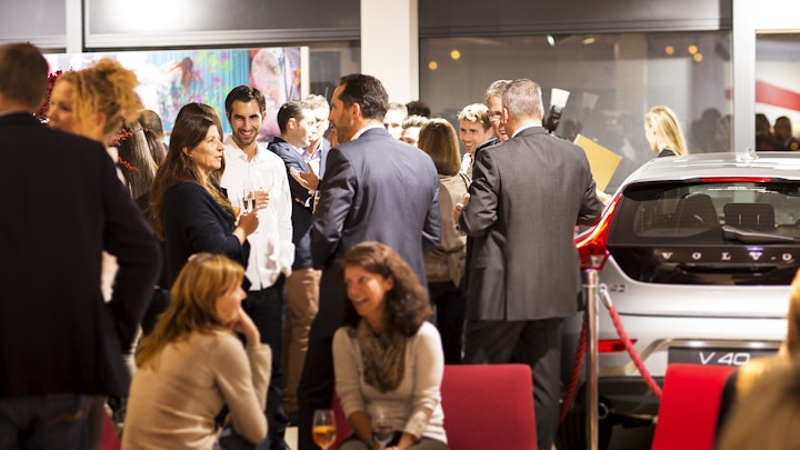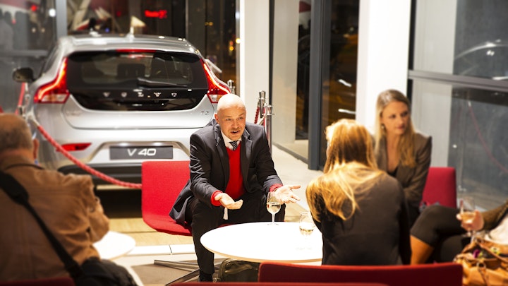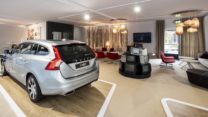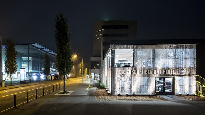 temporarily erected 2 floor pavilion, presenting the latest volvo car